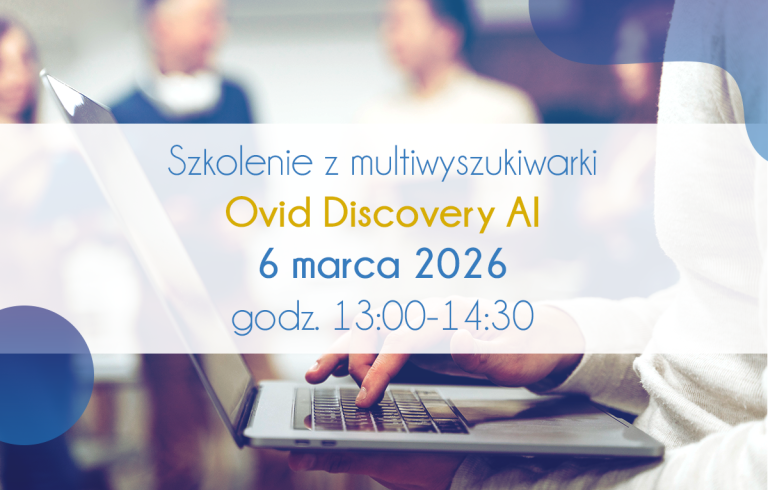 W dniu 6.03.2026 o godz. 13.00 odbędzie się szkolenie, dotyczące korzystania z Multiwyszukiwarki Ovid Discovery. Szczególnie zachęcamy do udziału pracowników,