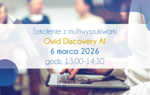 W dniu 6.03.2026 o godz. 13.00 odbędzie się szkolenie, dotyczące korzystania z Multiwyszukiwarki Ovid Discovery. Szczególnie zachęcamy do udziału pracowników, doktorantów i studentów Uniwersytetu Medycznego