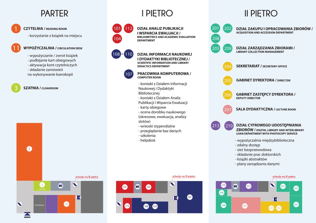 Dział Informacji Naukowej i Dydaktyki Bibliotecznej: pokoje numer 108, 109, 110